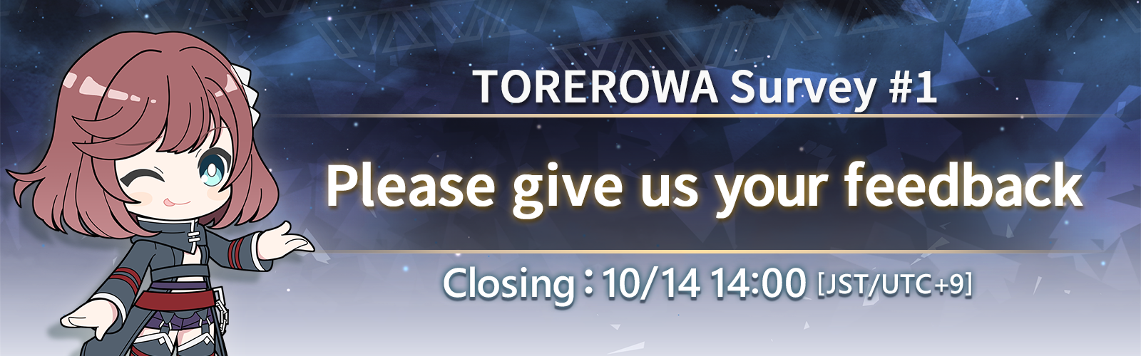 We will be conducting a survey starting October 3rd at 2:00 PM [JST/UTC+9] to help us improve our gameplay experience.